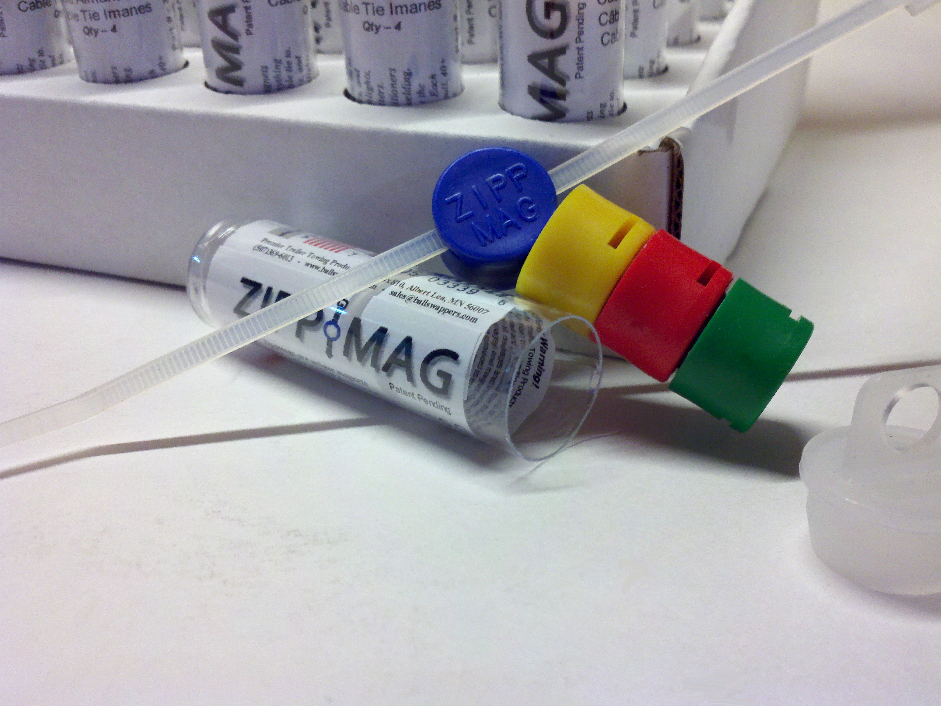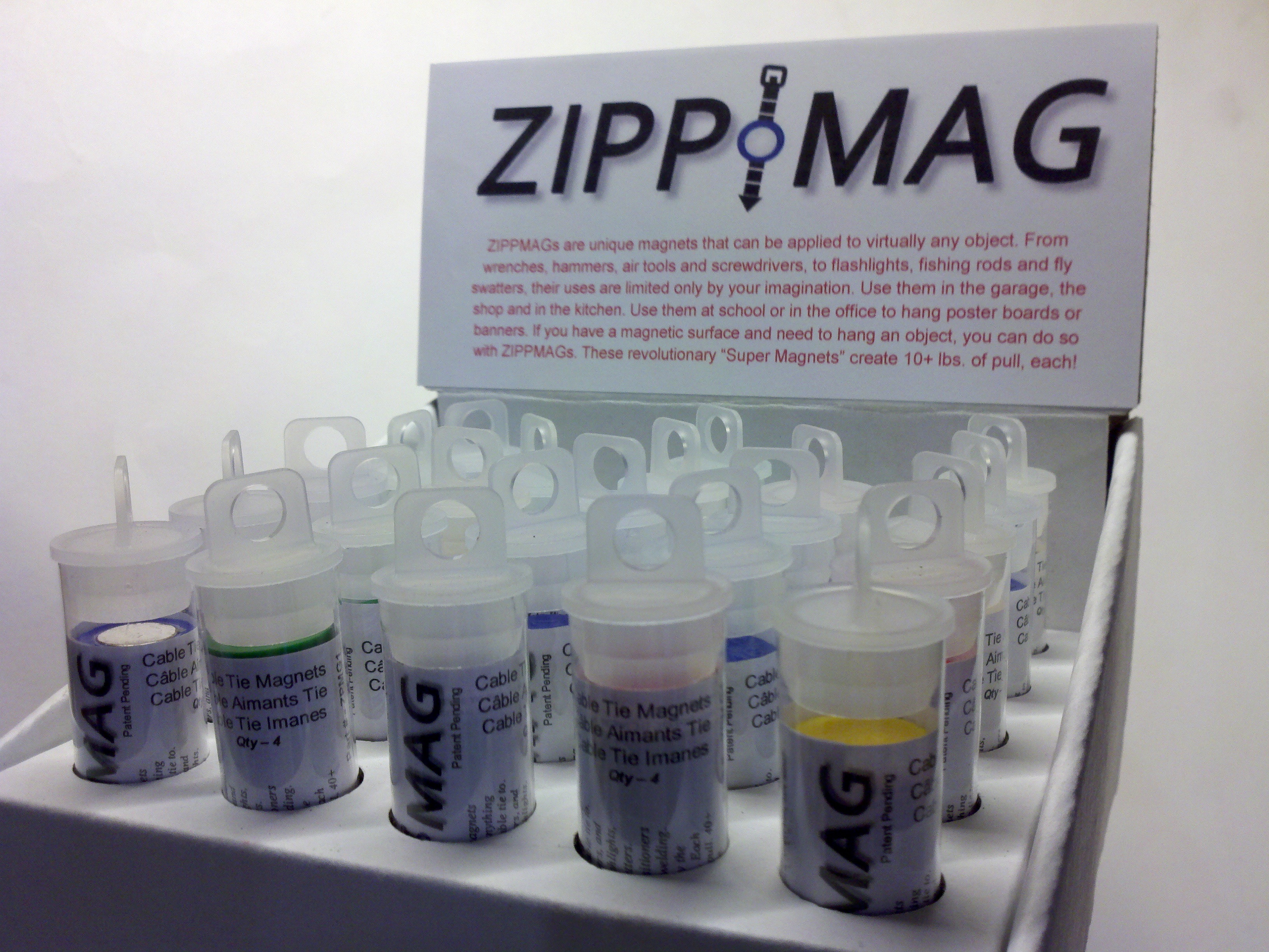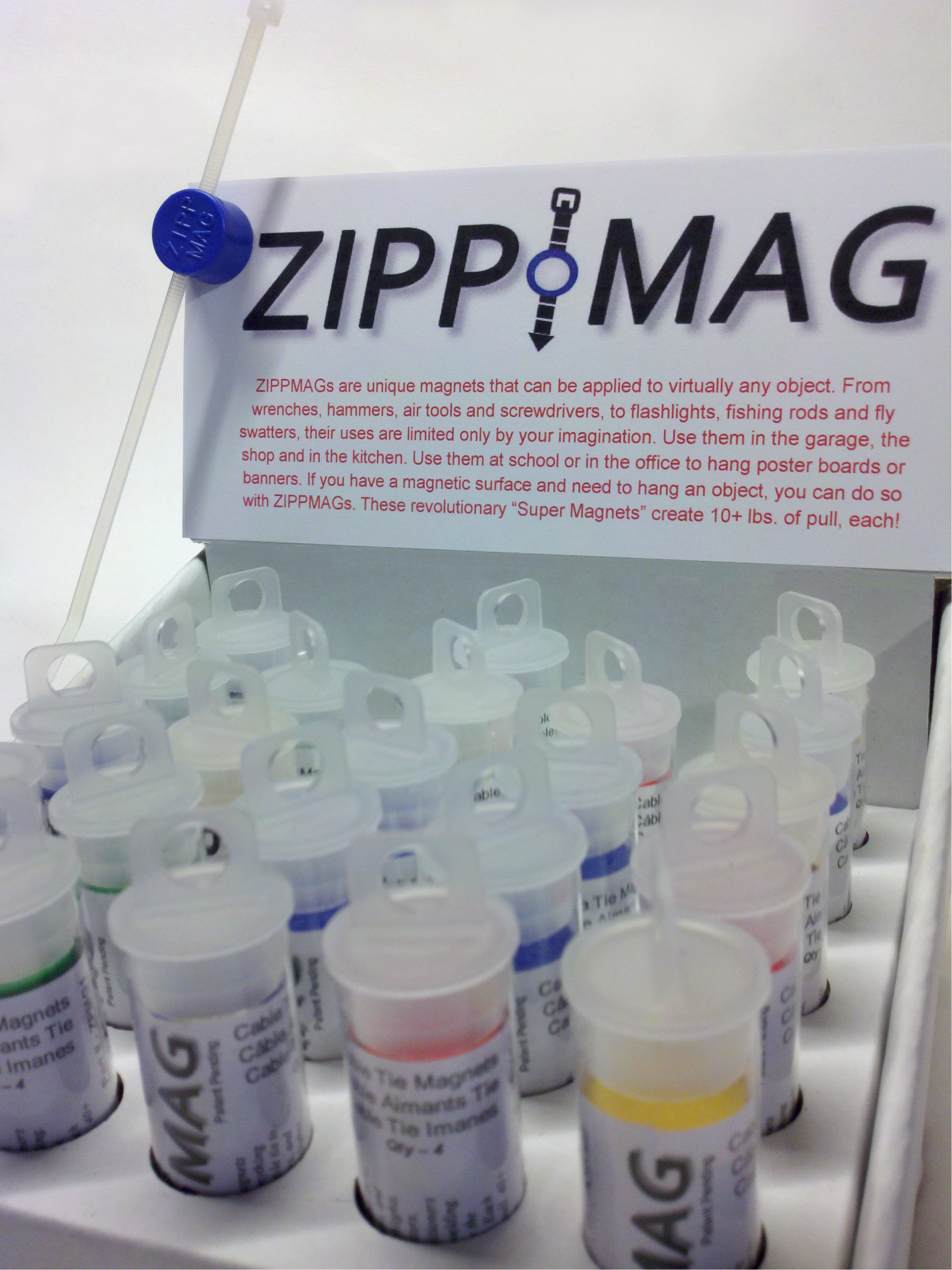 ZIPPMAGs are unique cable tie magnets that can be applied to virtually any object. From wrenches, hammers, air tools and screwdrivers, to flashlights, fishing rods and fly swatters, their uses are limited only by your imagination. Use them in the garage, the shop and in the kitchen. Use them at school or in the office to hang poster boards or banners. If you have a magnetic surface and need to hang an object, you can do so with ZIPPMAGs. These revolutionary “Super Magnets” create 10+ lbs. of pull, each!